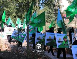 وعقب المهرجان، انطلق ملثمون يرتدون زياً عسكرياً ويحملون رايات حركة حماس وكتائب القسام، في مسير جاب أرجاء الجامعة وسط تكبيرات ودعوات لتنفيذ عمليات فدائية ضد الاحتلال.