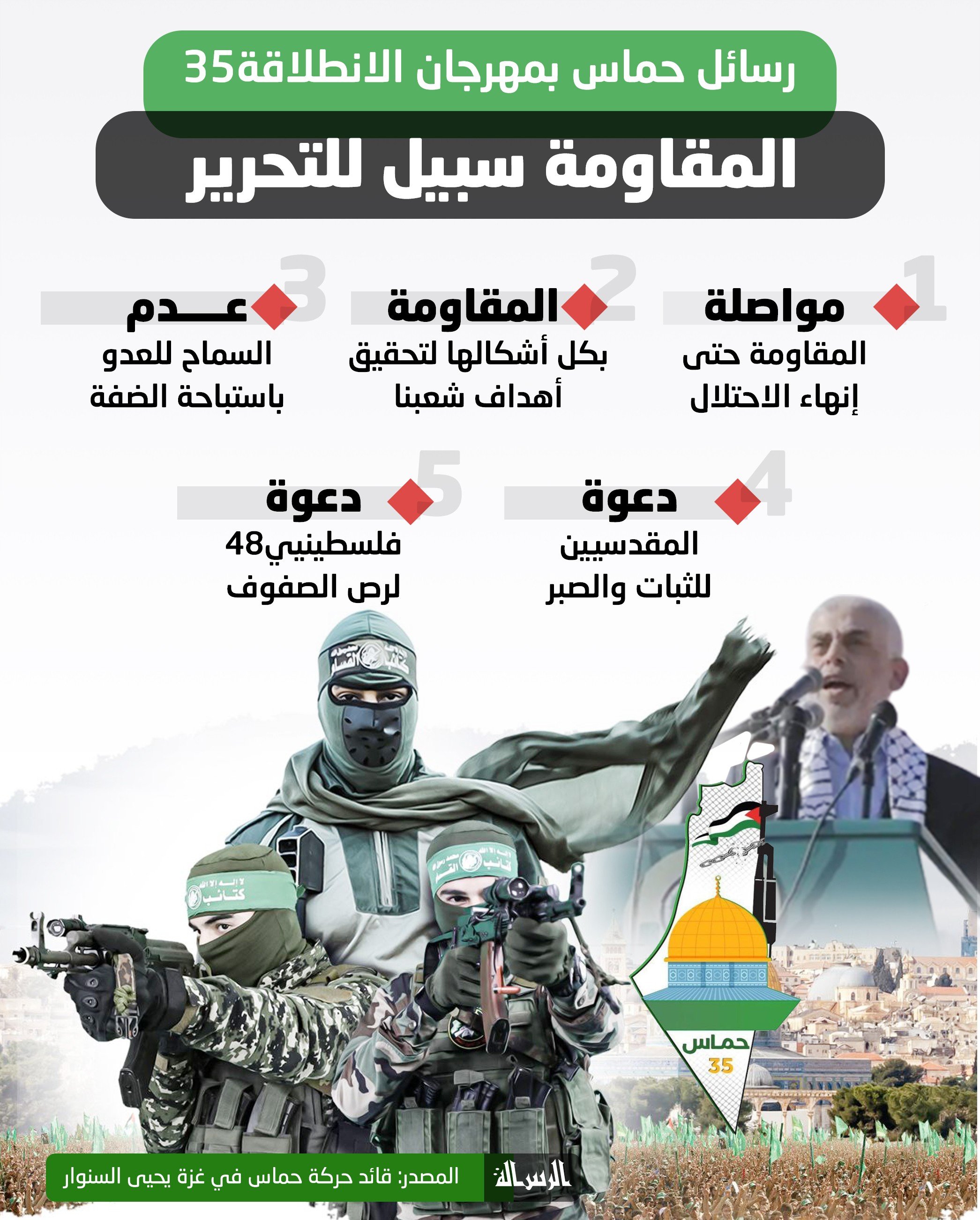 رسائل حماس بمهرجان الانطلاقة35.. المقاومة سبيل للتحرير