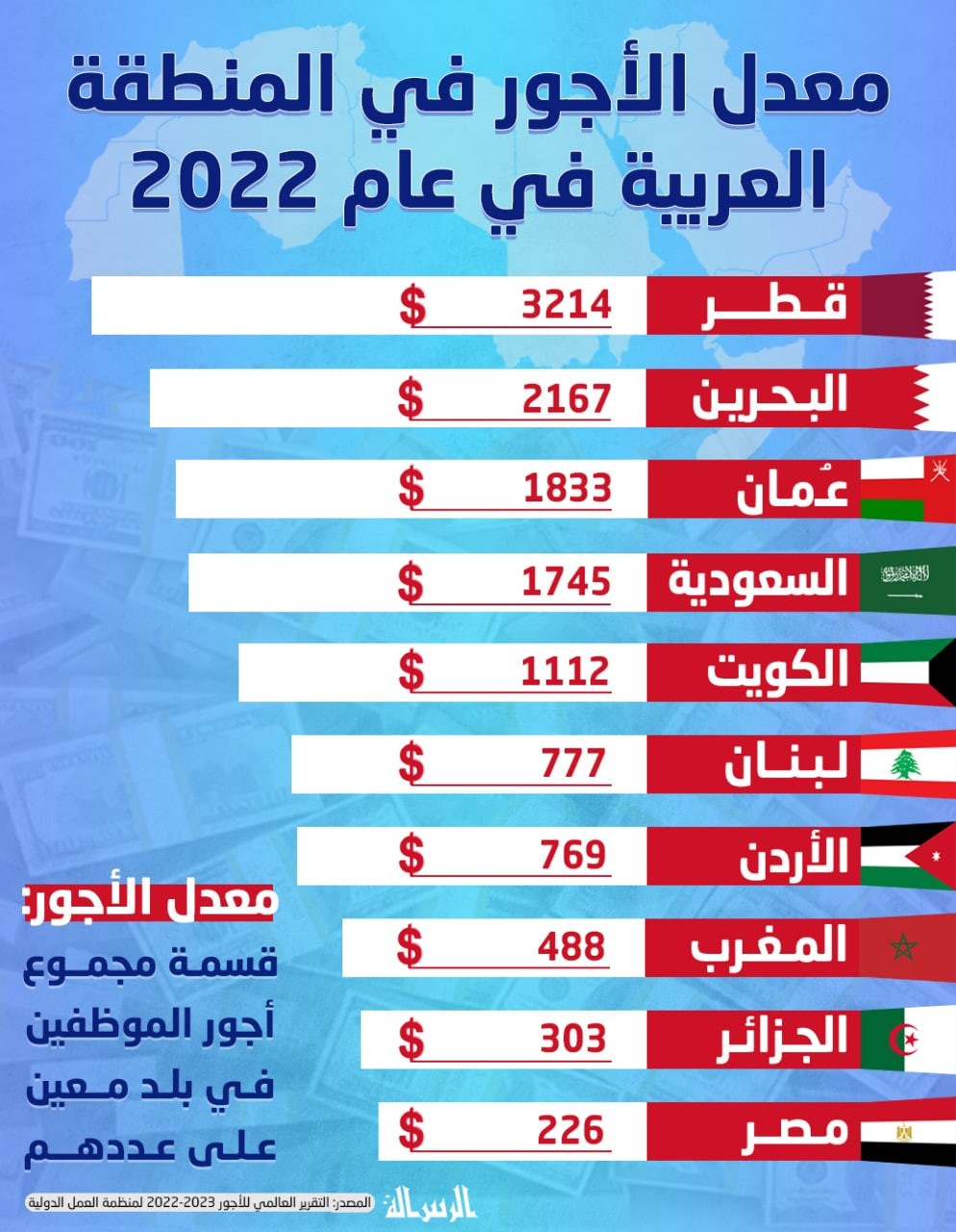 معدل الأجور في المنطقة العربية في عام 2022