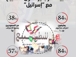 وبشأن دولة الاحتلال، طبعت العلاقات مع عدد من الدول التي شملها الاستطلاع، مثل الإمارات والمغرب والبحرين والسودان ، فإن 84٪ من المستطلعين يعارضون اعتراف بلدانهم "بإسرائيل".