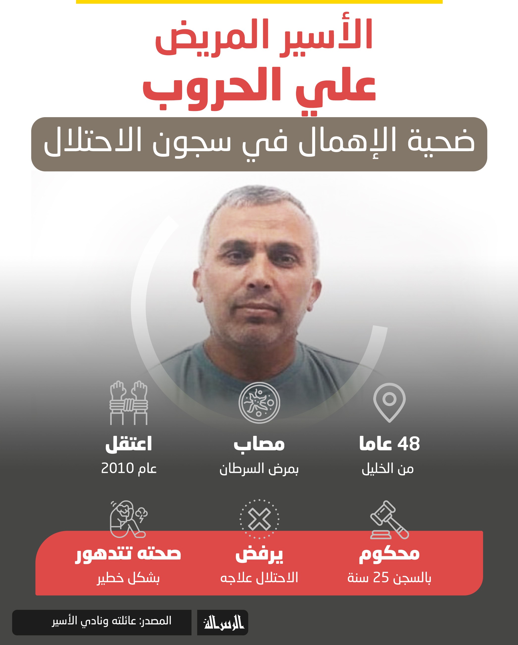 القتل البطيء يهدد حياة الأسير علي الحروب من الخليل