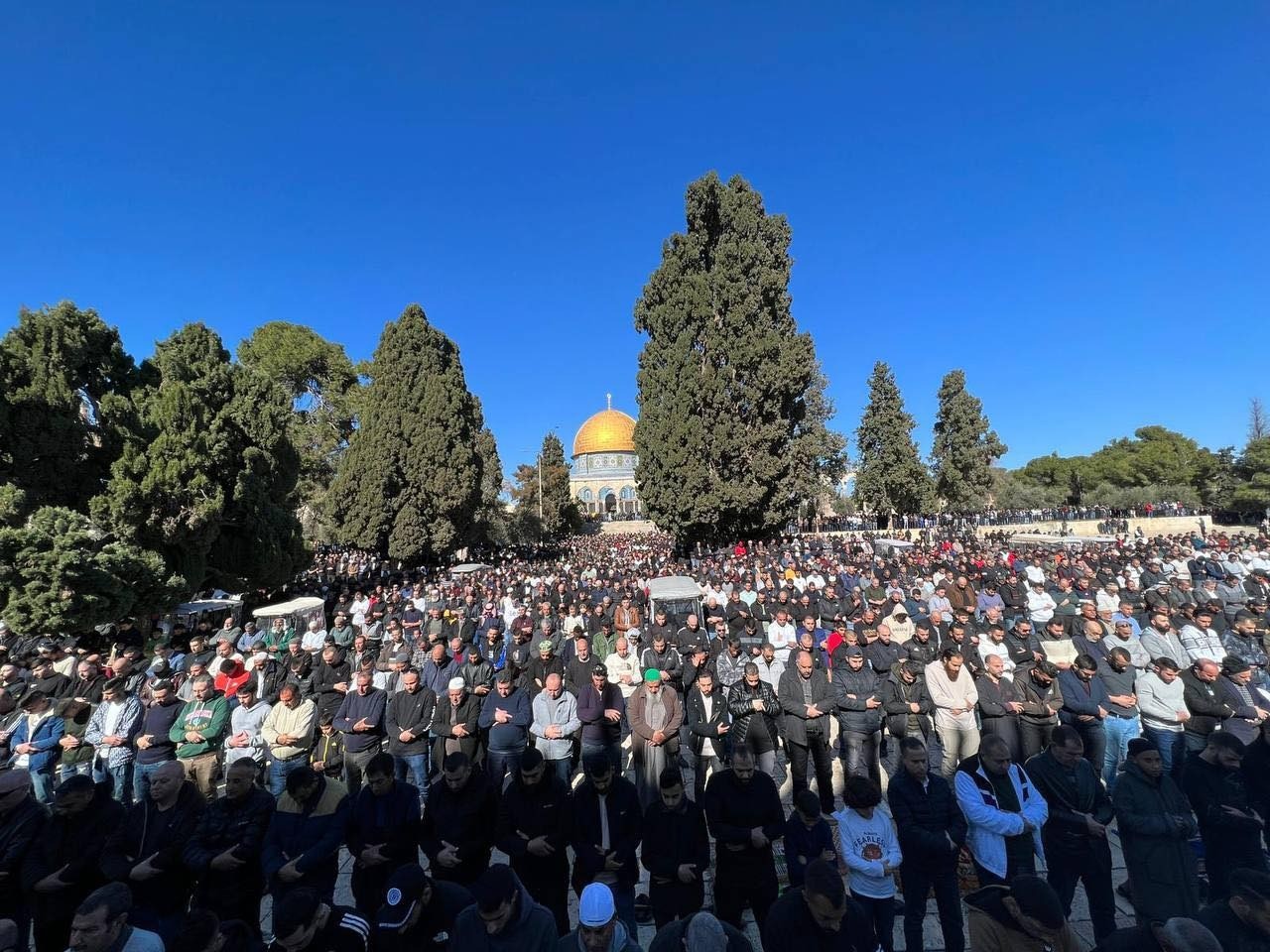 وقالت مصادر مقدسية إن نحو 75 ألف مصل من أهالي القدس والداخل المحتل ومن تمكن من الوصول للمسجد من الضفة أدوا الصلاة في باحاته ومصلياته المسقوفة.
