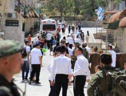 وأدى مئات المستوطنين رقصات استفزازية بالقرب من باب المغاربة، خلال تنفيذهم لمسيرة بدأت من جهة باب المغاربة، مرورا بباب الأسباط، وحي رأس العامود شرق القدس.