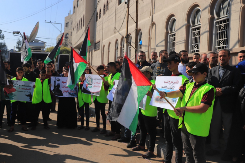نظمت حركة حماس جنوب غزة وقفة جماهيرية حاشدة؛ تنديدًا بالعدوان الصهيوني على جنين ونصرة للقدس والأقصى.