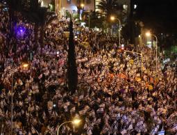 وبحسب قناة 12 العبرية، فإن أكثر من 13 ألف شاركوا في المسيرة التي نظمت في مدينة حيفا لأول مرة منذ سنوات طويلة، فيما تظاهر عشرات الآلاف في تل أبيب والقدس وبئر السبع ومناطق أخرى.