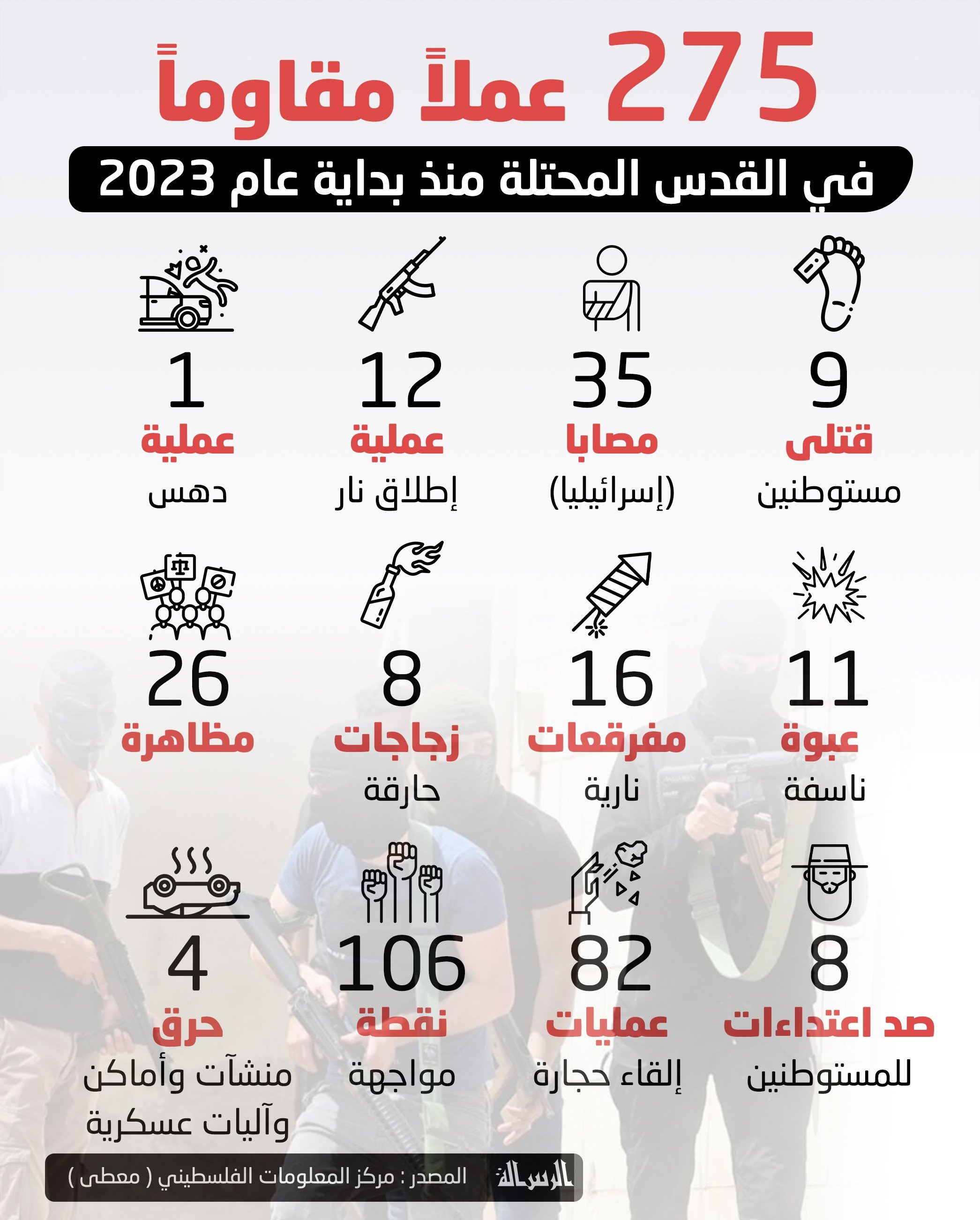 275 عملاً مقاوماً في القدس المحتلة منذ بداية عام 2023