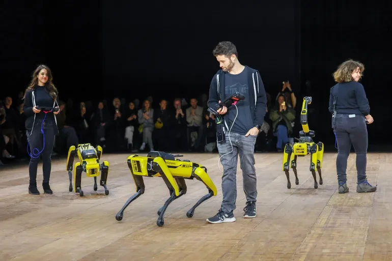 أقام مصمم الأزياء كوبرني في باريس شراكة مع شركة "بوسطن داينامكس" المتخصصة في صناعة الروبوتات للمشاركة في أول عرض أزياء كانت الكلاب الروبوتية للشركة النجوم فيه.