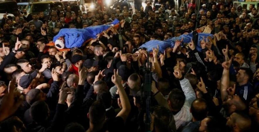 وذكرت في تصريح صحفي مساء الثلاثاء أن الشهداء الذين ارتقوا في جنين خلال اشتباك مسلح بعد محاصرة منزل بجنين واستهدافه بالصواريخ والنيران الثقيلة، هم الشهيد القسّامي المجاهد: عبد الفتاح حسين خروشة (49 عامًا)، من مخيم عسكر بنابلس، منفذ عملية حوارة البطولية التي قُتل فيها مستوطنان، والشهيد المجاهد: محمد وائل غزاوي (26 عاماً)، والشهيد المجاهد: زياد أمين الزرعيني (29 عامًا)، والشهيد المجاهد: طارق زياد مصطفى ناطور (27 عامًا)، والشهيد المجاهد: معتصم ناصر الصباغ (22 عامًا)، والشهيد المجاهد محمد أحمد سعيد خلوف (22 عاما).