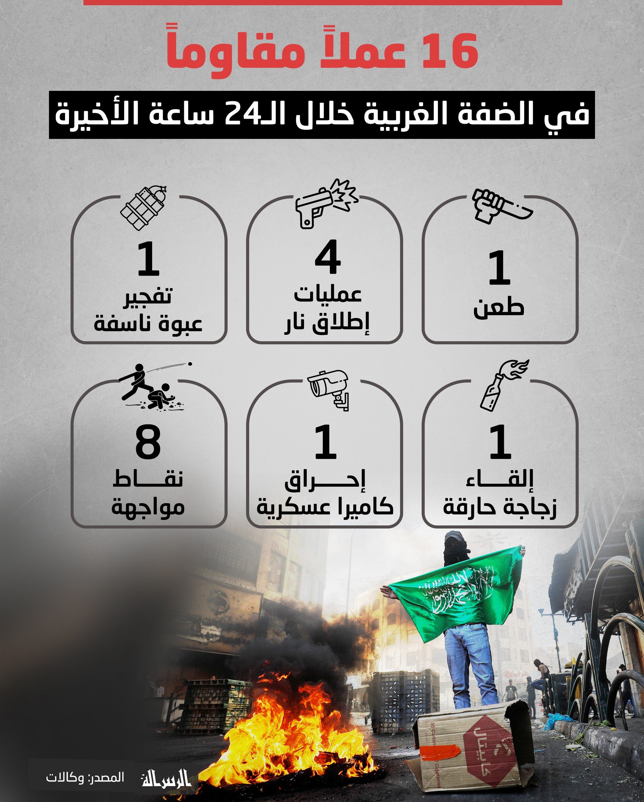 انفوجرافيك: 16 عملاً مقاوماً في الضفة الغربية خلال الـ24 ساعة الأخيرة