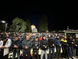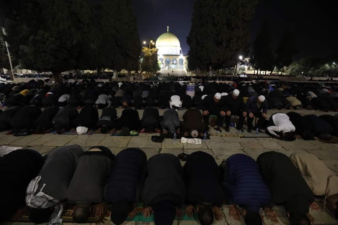 وتمكن قرابة 50 ألف مصلٍ من أداء صلاتي العشاء والتراويح في المسجد الأقصى المبارك، وذلك بعد ساعات من قمع قوات الاحتلال المعتكفين في المصلى القبلي.