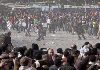 وكانت اشتباكات عنيفة وتراشق بالحجارة قد بدأت بعد ظهر اليوم في ميدان التحرير بعد اندفاع مئات من المتظاهرين الذين عرفوا كمؤيدين للرئيس مبارك، قبل أن يؤكد شهود أنهم رجال أمن بملابس مدنية ومجموعة ممن يوصفون "بالبلطجية".