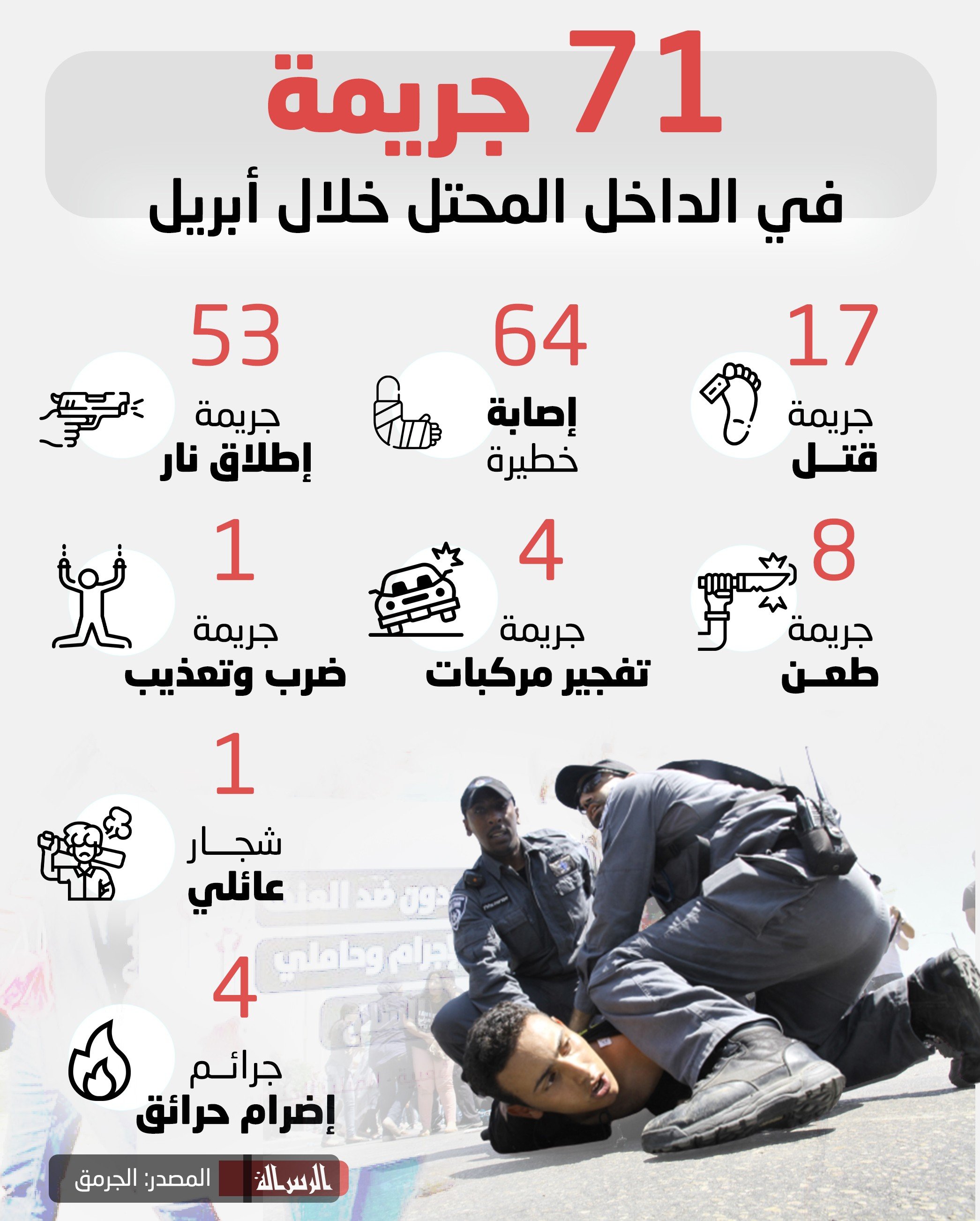 82 عملاً إجرامياً في الداخل المحتل خلال أبريل 2023