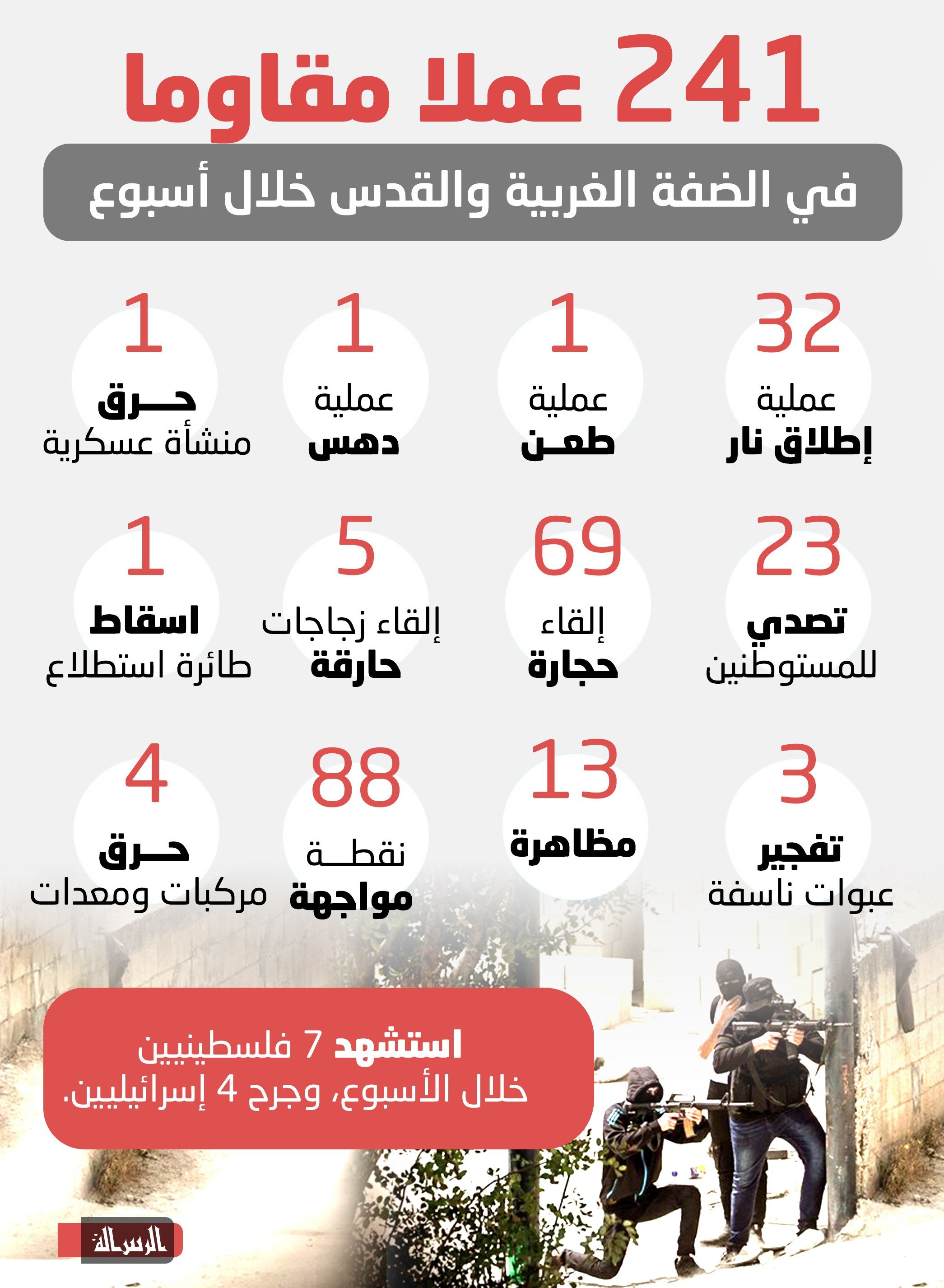 241 عملا مقاوما في الضفة والقدس خلال أسبوع