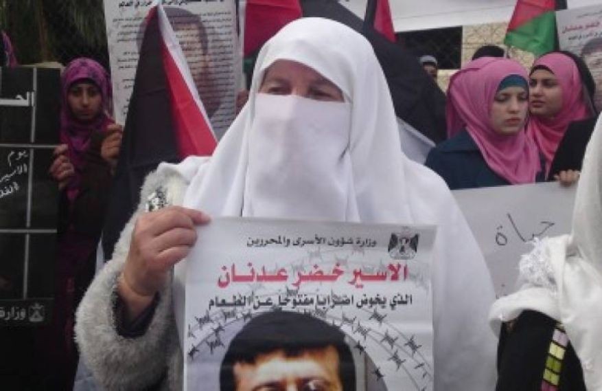بدأت الأسيرة المحررة عطاف عليان اليوم الأحد إضراباً عن الطعام أمام مقر الصليب الأحمر في مدينة البيرة، للمطالبة باسترداد جثمان الشهيد الأسير خضر عدنان.