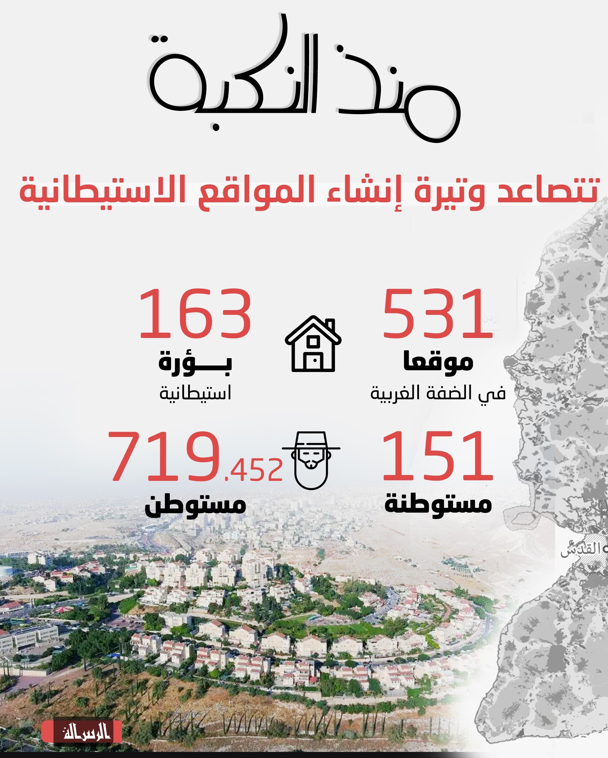 منذ النكبة تتصاعد وتيرة إنشاء المواقع الاستيطانية