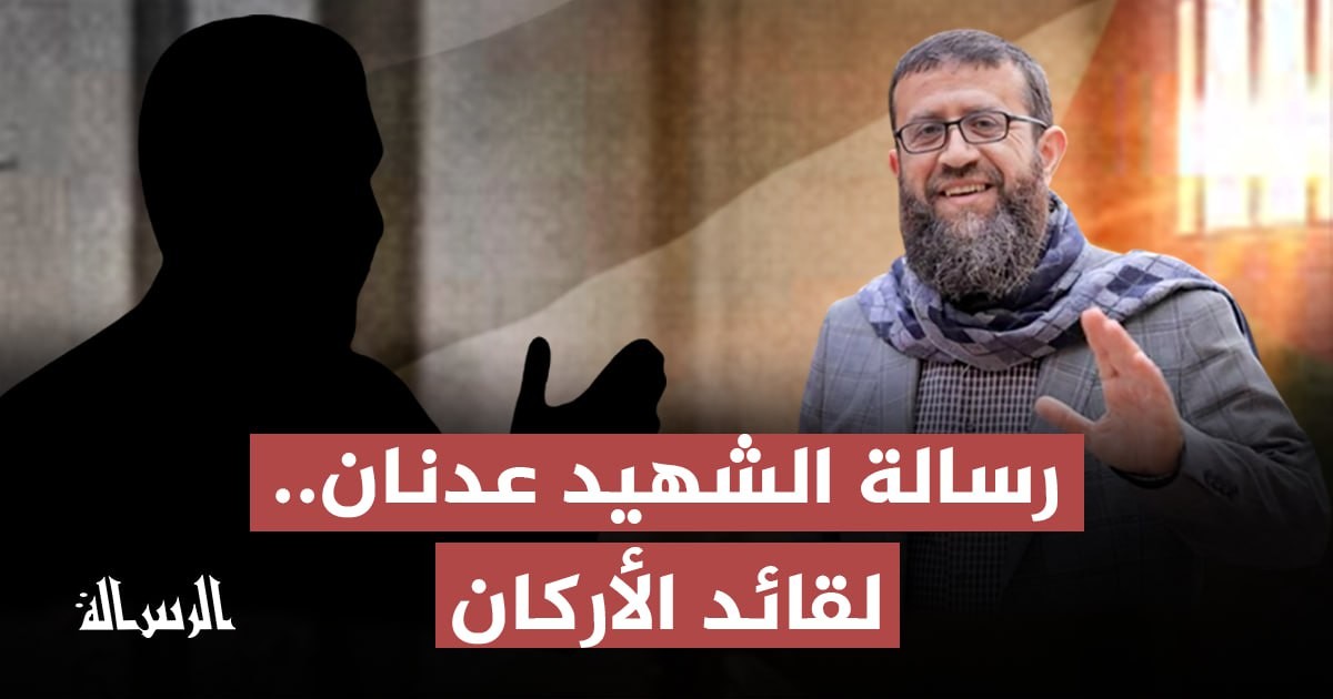 وتروي أم عبد الرحمن لـلمرة الأولى عبر "الرسالة نت" تفاصيل هذه الرسالة التي وجهها خضر عدنان، ولم تسمح الظروف وقتها لتوجيه الرسالة بسبب التحضيرات الفنية، ثم استشهاد القائد عدنان.