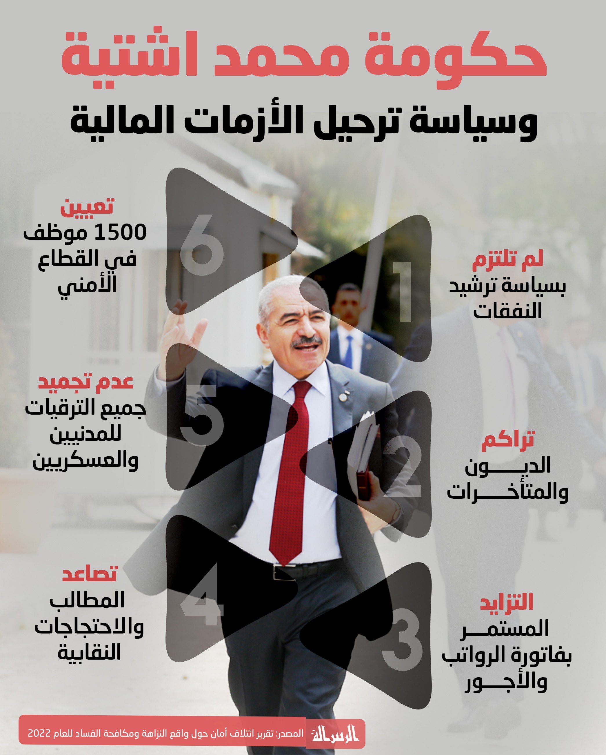 انفوجرافيك: حكومة محمد اشتية وسياسة ترحيل الازمات المالية