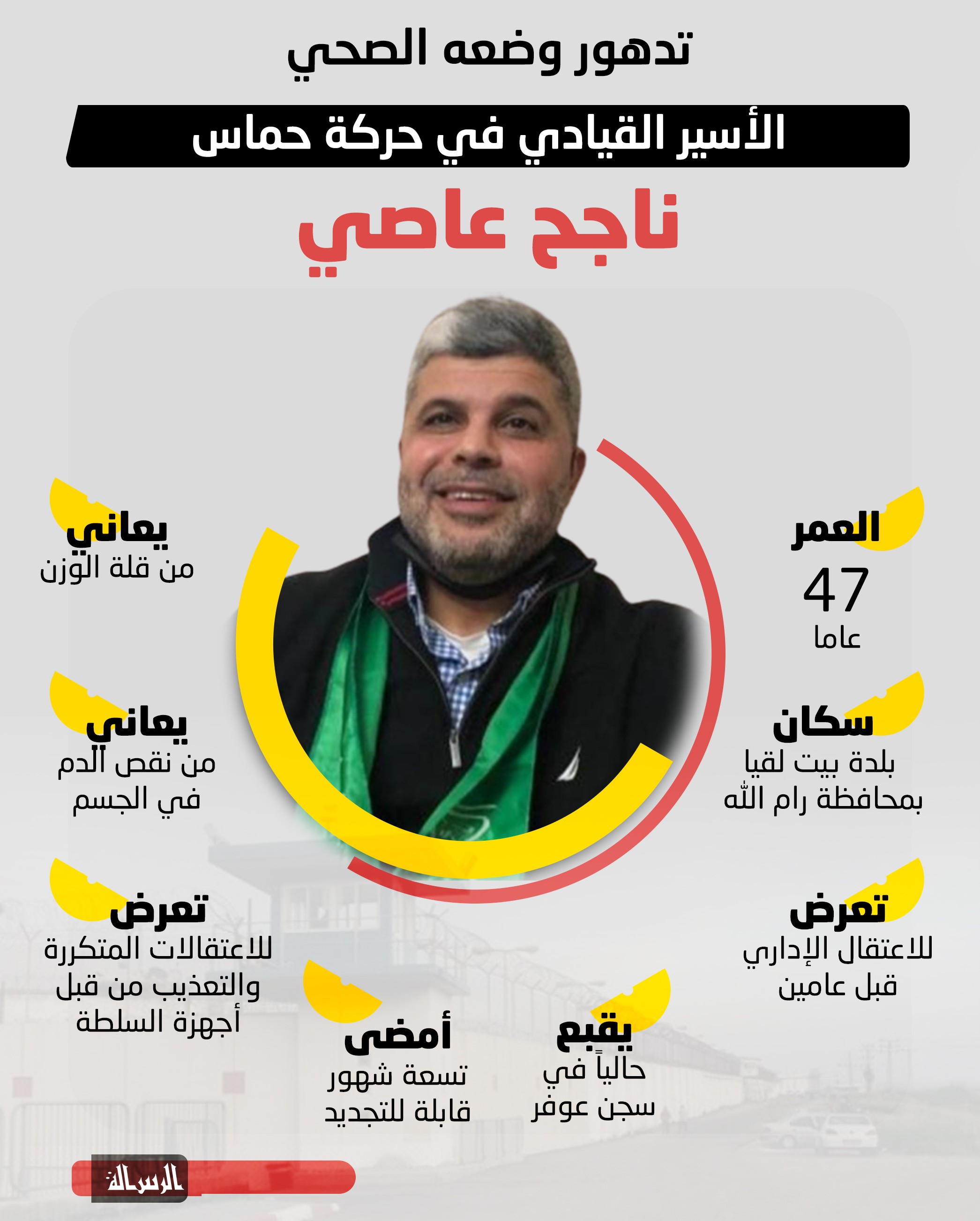 تدهور الحالة الصحية للأسير القيادي في حركة حماس ناجح عاصي