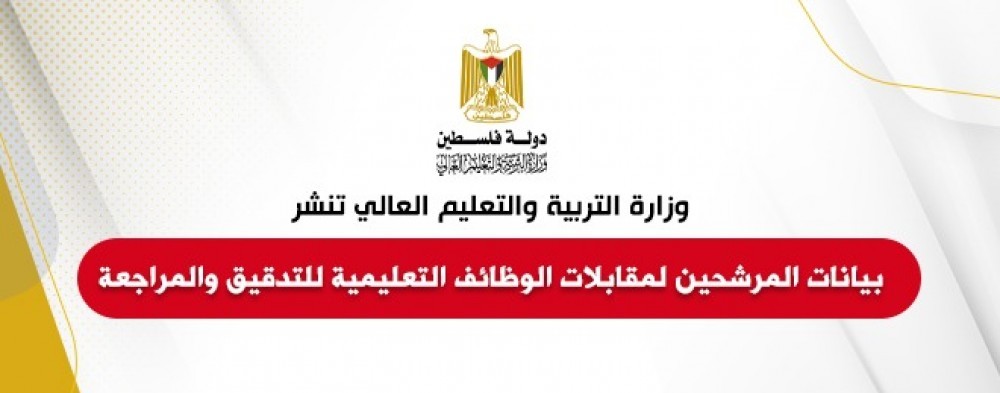 https://eservices.mohe.ps/jobs-gate/index.php ودعت الوزارة كافة المتقدمين المرشحة أسماؤهم للمقابلة؛ مراجعة وتدقيق كافة بياناتهم. وأوضحت الوزارة أنه في حال وجود أي خطأ يحتاج تعديل؛ يتم إرسال المشكلة عبر بوابة الاستقطاب أو مراجعة مبنى وزارة التربية والتعليم العالي _مدينة غزة، قسم التوظيف في موعد أقصاه نهاية دوام يوم الخميس 13/07/2023، حيث سيتم اعتماد البيانات بشكل نهائي بعد هذا التاريخ.