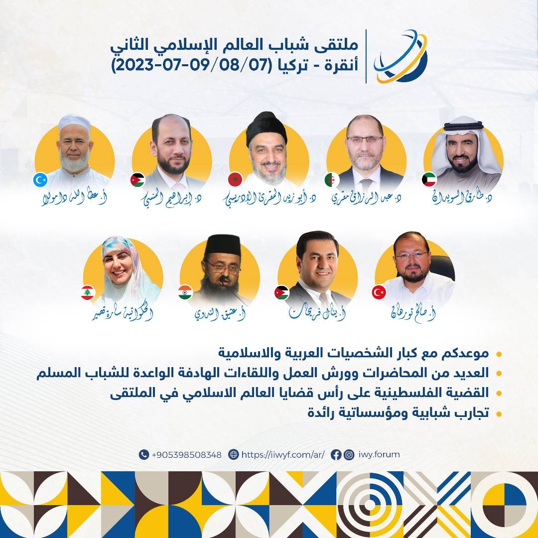 من المقرر أن ينطلق ملتقى شباب العالم الإسلامي في نسخته الثانية، بالعاصمة التركية أنقرة، يوم السابع من يوليو المقبل، بمشاركة المئات من النشطاء الشباب في العالم العربي والإسلامي، من 57 دولة حول العالم.