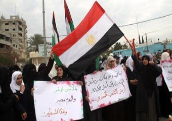 نظمت الحركة النسائية في محافظة خان يونس وقفة تضامنية شاركت فيها النساء الفلسطينيات صباح اليوم الأول لسقوط النظام المصري .