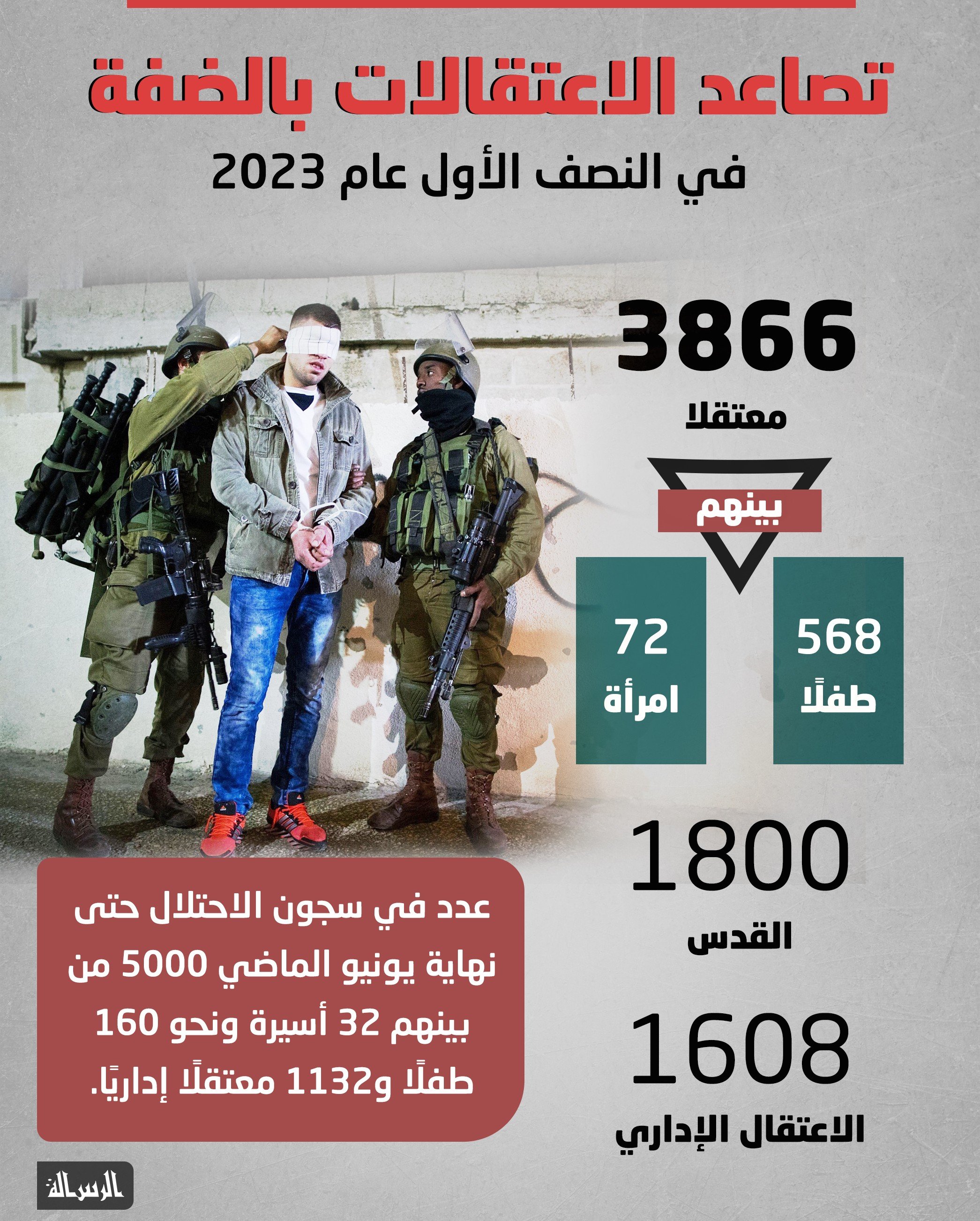 تصاعد الاعتقالات بالضفة في النصف الأول عام 2023