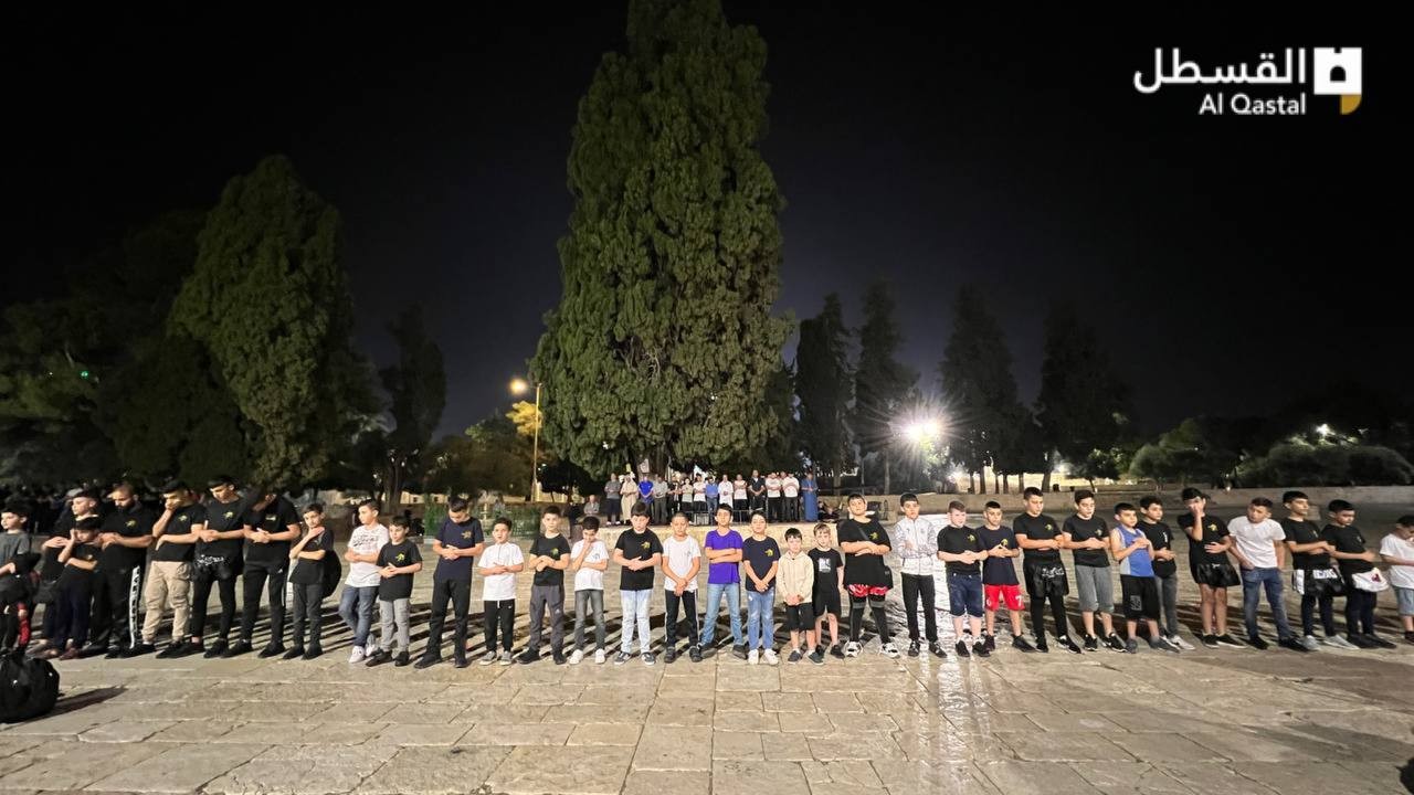 وشارك في أداء صلاة الفجر في الأقصى عائلات مقدسية بينها أطفال ونساء، قاموا بإعمار جنبات المسجد.