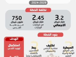 وصادقت حكومة الاحتلال 20/8/2023 على خطة خمسية للسنوات 2024 - 2028 في القدس المحتلة، وسيبلغ مبلغ الخطة الخمسية كلها 3.2 مليار شيكل، بينها 2.450 مليار شيكل من ميزانيات الوزارات، وحوالي 750 مليون شيكل من بلدية القدس وسلطة الابتكارات وشركة الكهرباء وغيرها. وجاءت ميزانية الخطة أكثر بحوالي مليار شيكل من ميزانية الخطة الخمسية السابقة للقدس المحتلة وكانت بمبلغ 2.1 مليار شيكل.