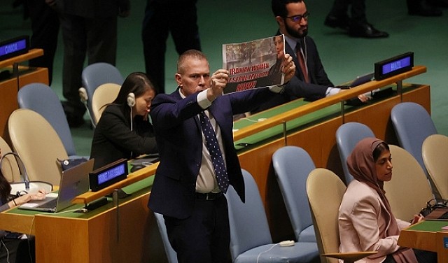 وأقدم إردان على خطوته برفع تلك اللافتة، أثناء انعقاد أعمال الدورة الـ78 للجمعية العامة للأمم المتحدة في مدينة نيويورك.