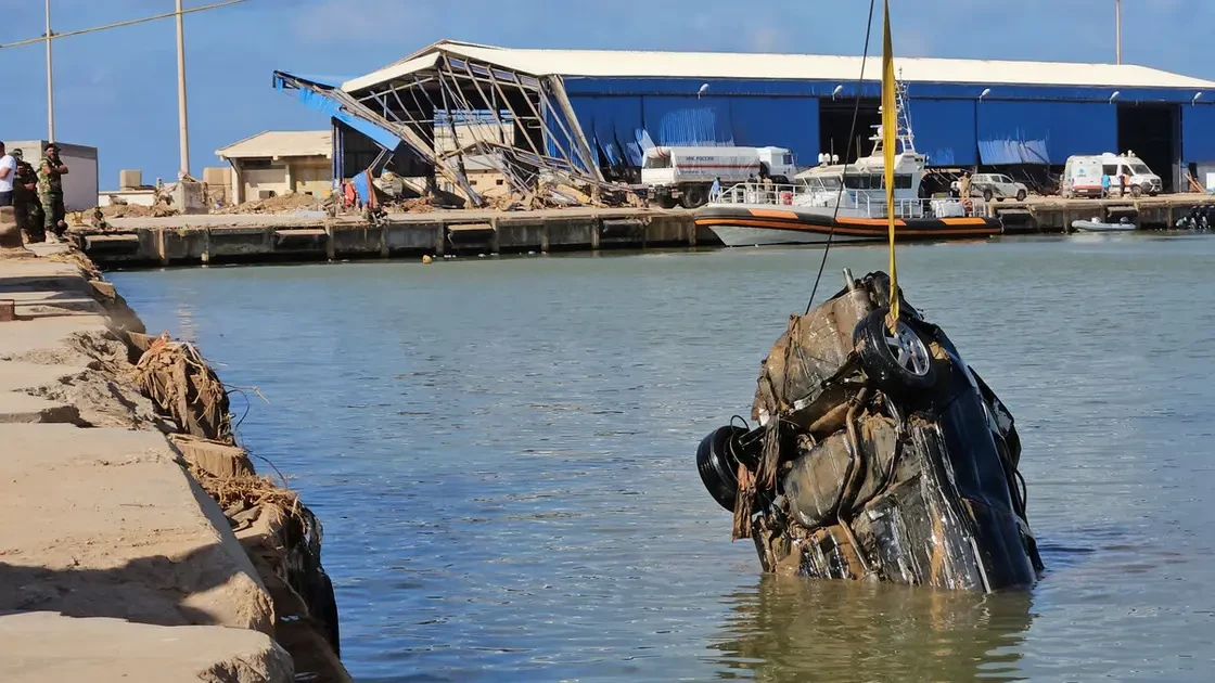 أسبوعان مرا على الكارثة التي ضربت مدينة درنة في الشرق الليبي جراء الفيضانات والسيول التي خلفها إعصار دانيال، لتتحول إلى مكب للركام، لاسيما ميناءها.
