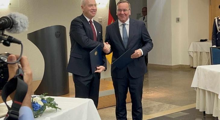 وقع وزير الحرب (الإسرائيلي) يوآف غالانت، اليوم الخميس، على صفقة بيع منظومة صواريخ دفاعية، لألمانيا، بقيمة 3.5 مليار دولار، وُصِفت بـ"الأكبر" في تاريخ "إسرائيل".