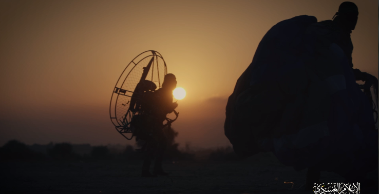 نشرت كتائب القسام فيديو يوثق مشاهد لسرب صقر إحدى الوحدات المشاركة في عملية طوفان الأقصى