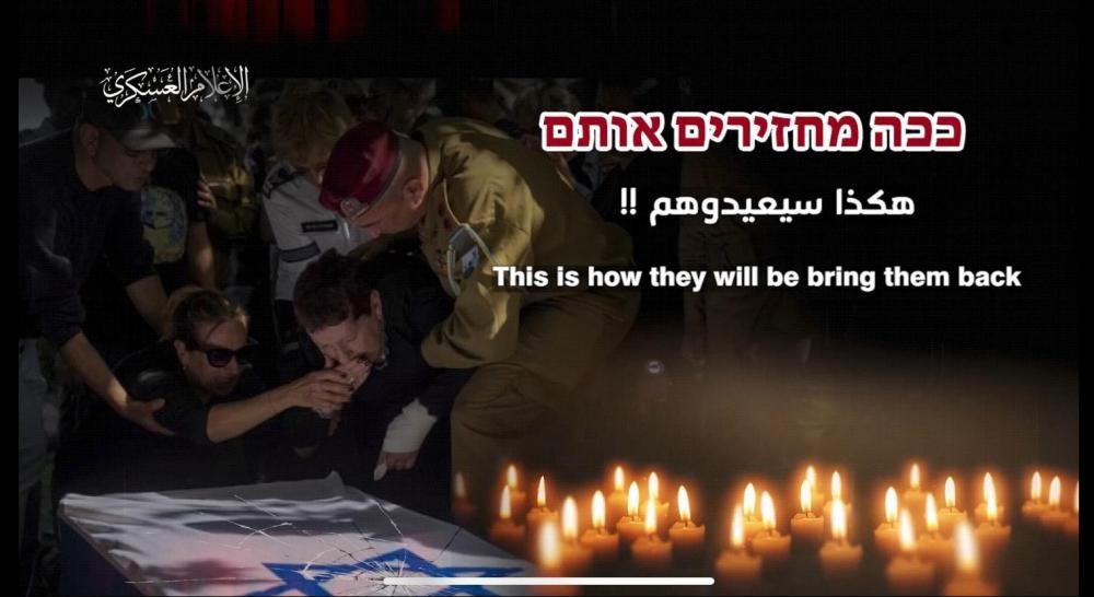 وختمت القسام المقطع المصور بصورة لعائلة إسرائيلية تبكي إلى جانب تابوت، مرفقة ذلك بجملة "هكذا سيعيدوهم"، في إشارة إلى أن نتنياهو يتعمد قتلهم، وأنه لا أسرى سيعودون أحياءً إلا بصفقة تبادل مع المقاومة.