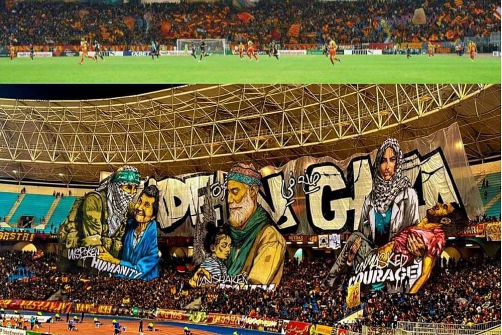 شهدت مدرجات الملاعب العربية والدولية في الأسابيع الماضية حراكاً جماهيرياً، تضامناً مع القضية الفلسطينية، ورفضاً لحرب الإبادة الجماعية المتواصلة بقطاع غزة منذ السابع من أكتوبر الماضي 2023.