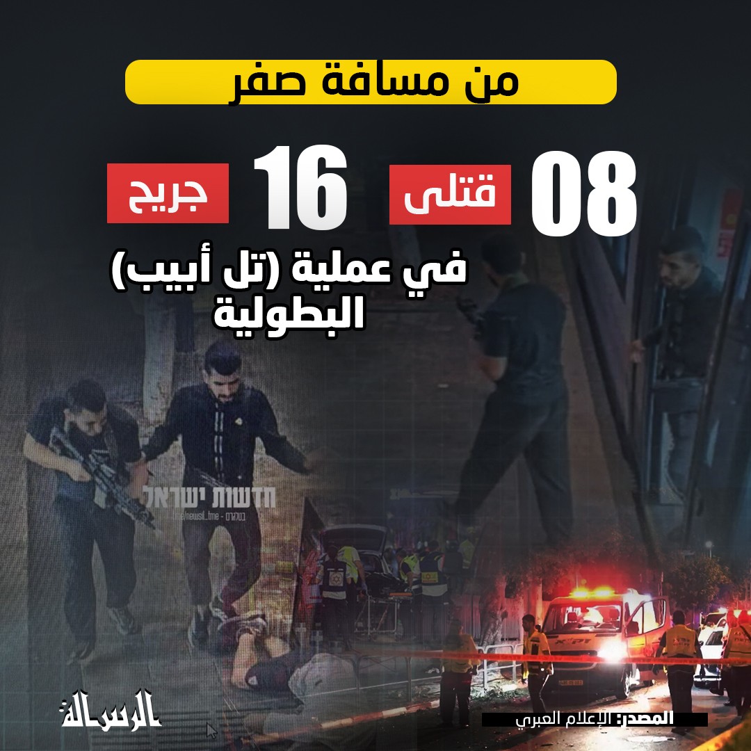 من مسافة صفر.. 8 قتلى و16 جريحا في عملية (تل أبيب) البطولية