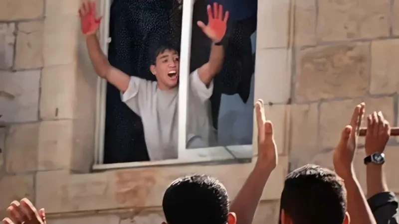 صورة صالحة الأشهر عندما ظهر يلوح بيده الملطختين بالدماء بعد مشاركته في عملية قتل الجنديين فاديم نورجيتش ويوسي أفراهامي قتل الجنديين في رام الله عام 2000.