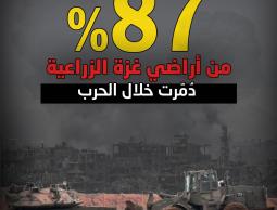 وأضافت "هذا الضرر الذي لحق بالأراضي الزراعية يؤدي إلى تفاقم خطر المجاعة الوشيك في جميع أنحاء قطاع غزة".