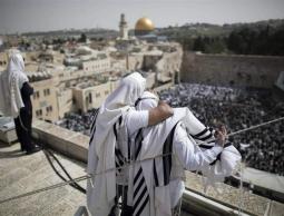 وأدى المستوطنون طقوسا تلمودية، وصلوت جماعية أمام أبواب المسجد الأقصى، ونفذوا جولات استفزازية، تزامناً مع منع دخول المصلين المسليمن، ونصب الحواجز.