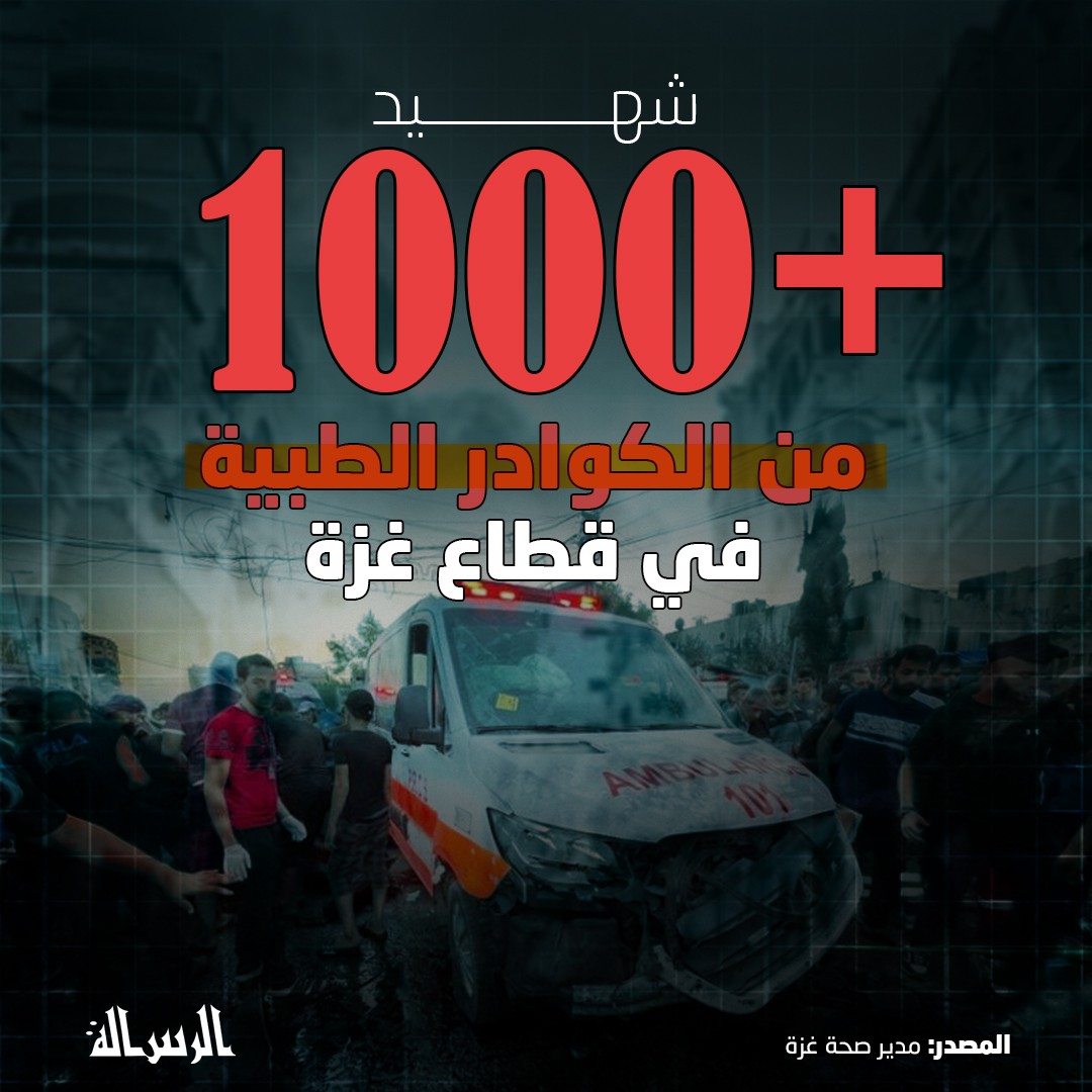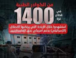 انفوجرافيك: 1400 من الكوادر الطبية استشهدوا خلال الإبادة التي يرتكبها الاحتلال (الإسرائيلي) بدعم أمريكي بحق الفلسطينيين في قطاع غزة.