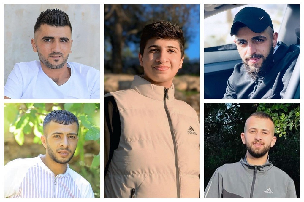 والشهداء هم: فراس الجاسر، رامي الحويطي، اللذين ارتقيا داخل منزل في مخيم جنين، إضافة إلى رائد حنايشة، وأنور سباعنة، وعدنان طزازعة، الذي استشهدوا في قصف فجر الثلاثاء، لمنزل في قرية مثلث الشهداء جنوب جنين.