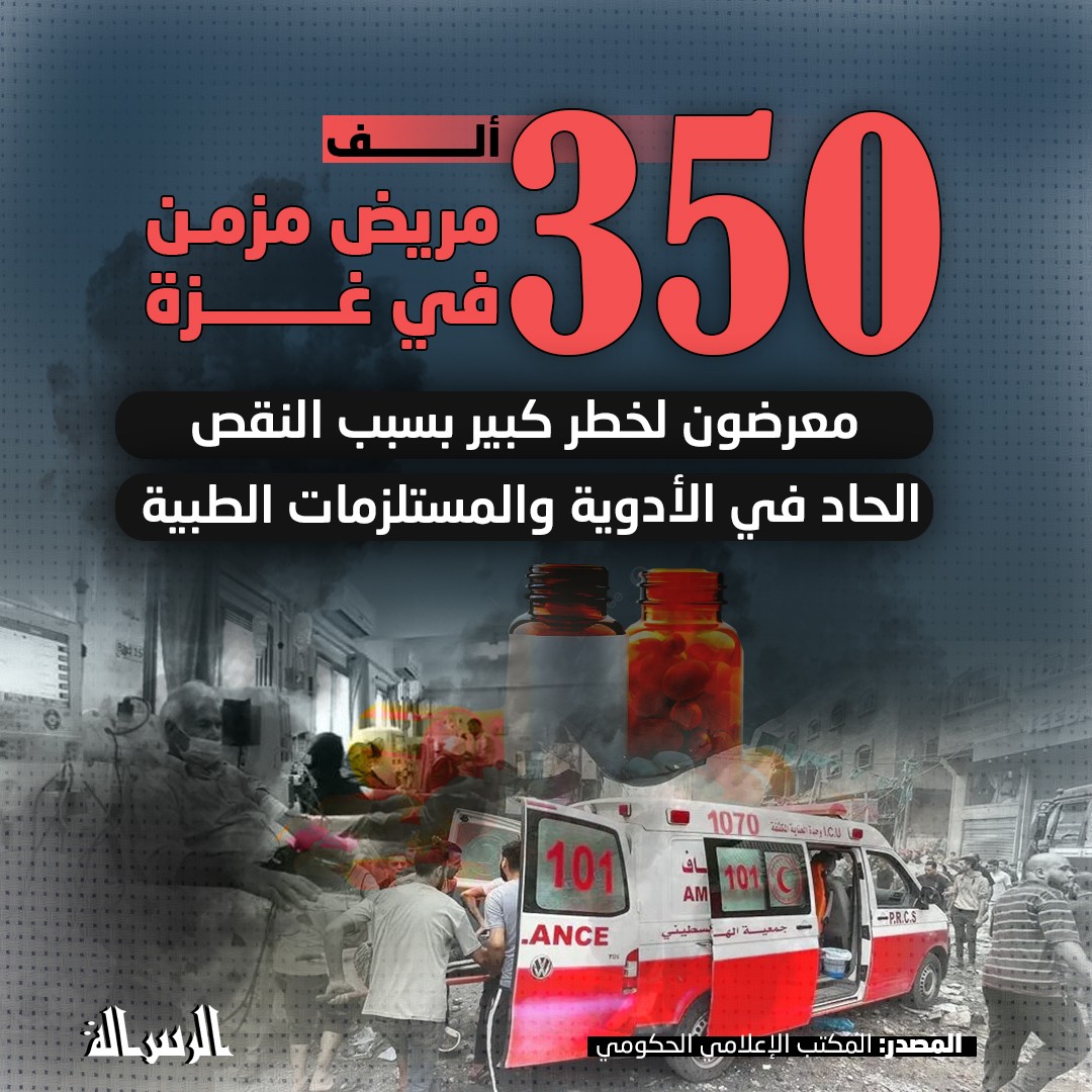 350 ألف مريض مزمن في غزة يواجهون الخطر بسبب نقص الأدوية والمستلزمات الطبية