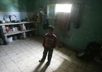درجات مصعد ضيق كما هو حالهم يأخذك الى منزل أبو أحمد المستأجر، هناك تكشفت ملامح الفقر والمرض.