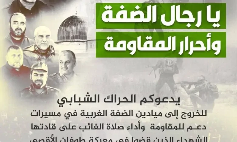 دعوات للخروج إلى ميادين الضفة في مسيرات دعم للمقاومة وأداء صلاة الغائب على قادتها الشهداء