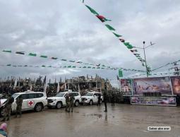 وتسلم موظفو الصليب الأحمر الدولي الأسيرين، بعد توقيع أوراقهما من أحد عناصر القسام، على وقع أصوات الهتافات للمقاومة والتكبيرات.