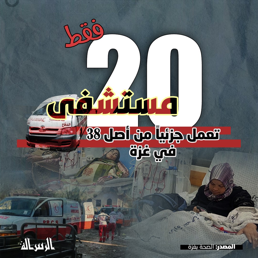 20 مستشفى فقط تعمل جزئياً من أصل 38 في غزة.