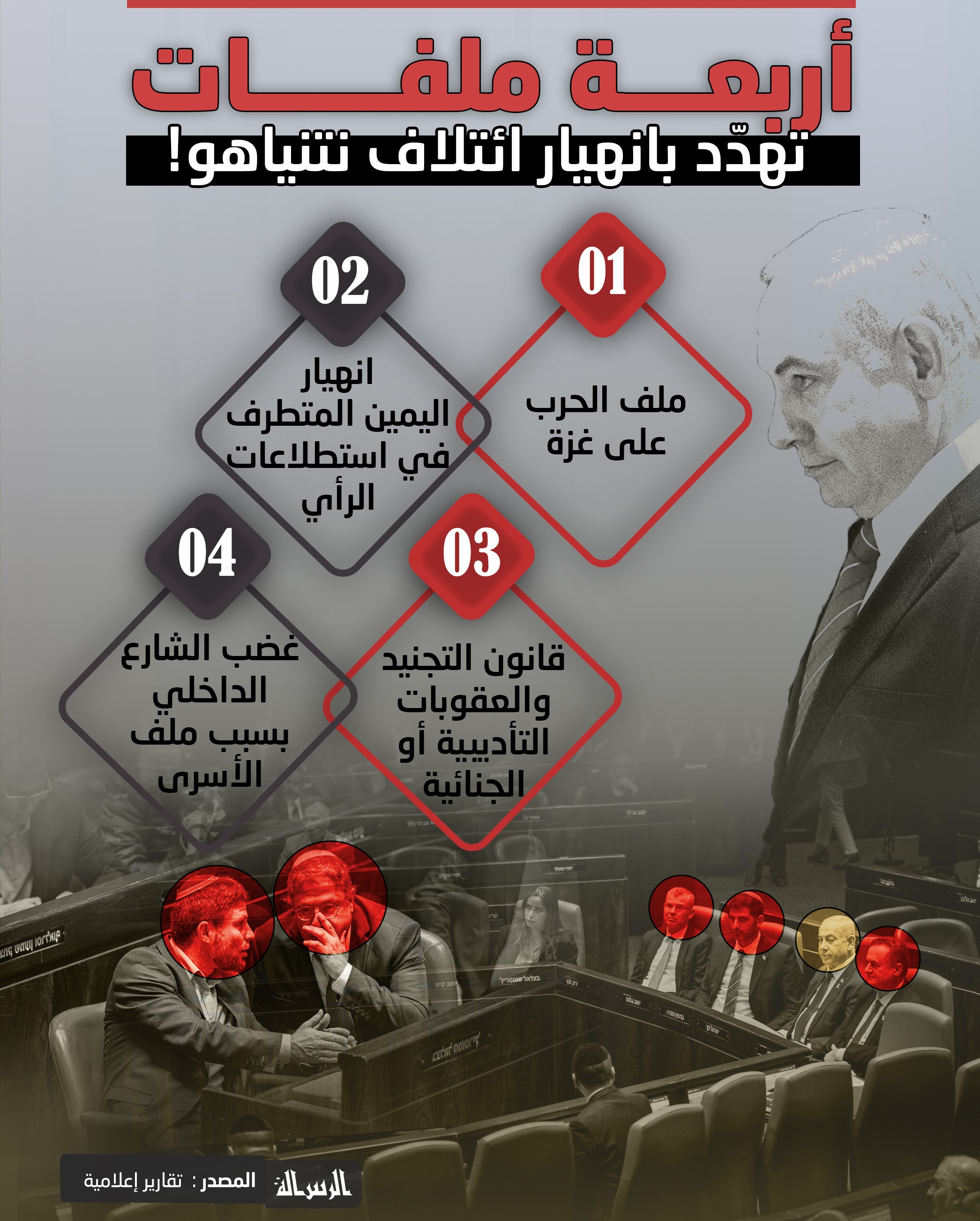 أربعة ملفات تهدّد بانهيار ائتلافه.. هل حكومة نتنياهو على وشك السقوط؟