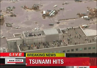 وأظهرت صور مباشرة بثتها قنوات فضائية موجات تسونامي وهي تضرب مناطق واسعة في اليابان جارفة في طريقها منازل وسيارات ومتسببة في اندلاع حرائق وانقطاع في التيار الكهربائي، إضافة إلى توقف حركة القطارات في العاصمة.