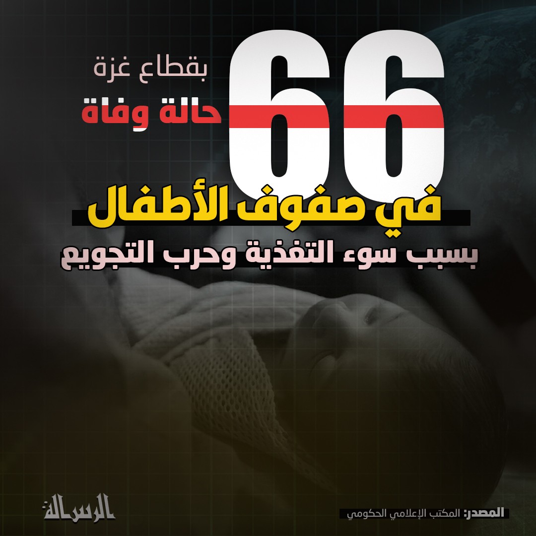 66 حالة وفاة في صفوف الأطفال بقطاع غزة بسبب سوء التغذية وحرب التجويع