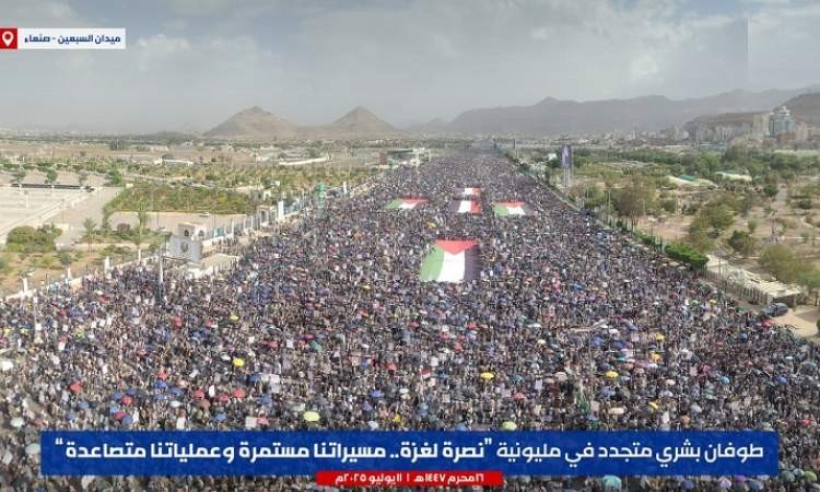 وأوضح بيان صادر عن المسيرة، ألقاه رئيس جامعة صنعاء الدكتور محمد البخيتي، أنه واستجابة لله تعالى، وجهاداً في سبيله، وابتغاءً لمرضاته، خرجنا اليوم في مسيراتنا المليونية نصرة للشعب الفلسطيني المسلم المظلوم، ولمواجهة الطغيان والإجرام اليهودي الصهيوني الأمريكي، الذي يرتكب أبشع جريمة إبادة جماعية في غزة على مدى واحد وعشرين شهراً.