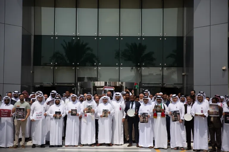 نظّمت مؤسسة قطر الخيرية، أمس الاثنين، وقفة تضامنية صامتة أمام مقرها الرئيسي في الدوحة بمشاركة منظمات إنسانية عالمية، مطالبين بإنقاذ أهالي قطاع غزة، خاصة الأطفال والنساء وكبار السن، في ظل حصار خانق يفاقم المجاعة ويؤدي لانهيار الخدمات الأساسية.